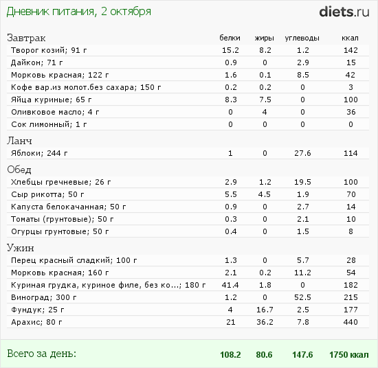 Первый день получился комом. Сбалансированно сформировать рацион не получилось - к вечеру был сильный недобор по Ж и калоражу, пришлось добирать орехами и виноградом. И еще - ближе к вечеру появилось чувство голода.