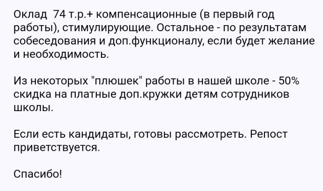В паблике, в котором я обитаю нередко, учительско-репетиторском, объявления директоров без указания количества часов и ставки, с некоторых пор стали вызывать большое недовольство со стороны участников.