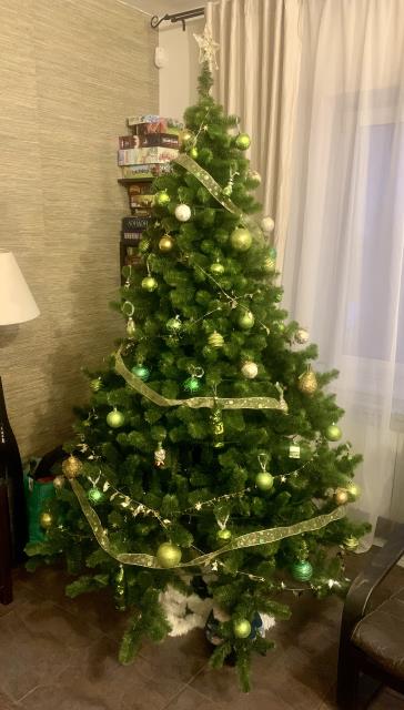 От меня тоже елка. Наконец нарядили. В этом году в зеленый, в честь змеи.