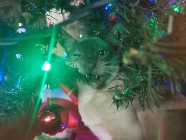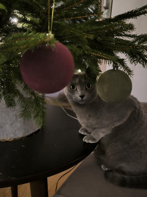У нас тоже мелкий кот с о-очень активной жизненной позицией. Без ёлки совсем грусно и решили провести эксперимент, для начала собрали старую небольшую (120 см) ёлку. Кот чуть пожевал ветки, игрушки и гирлянды его не заинтересовали вообще. Зато он спит под этой ёлкой, нашёл себе укромный уголок. В субботу хочу собрать уже большую ёлку.