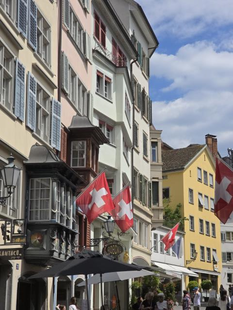 От озера к вокзалу идёт центральная улица Банхофштрассе. Тоже считается одной из самых дорогих улиц в мире. На ней располагаются магазины, банки и разные другие учреждения. От улицы отходят переулки, весьма живописные.