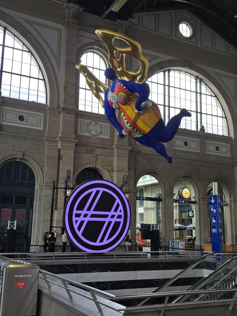 Приходим к Центральному вокзалу. В помещении вокзала под потолком висит фигура летящий женщины-ангела работы скульптора Ники де Сен-Фаль. У нее очень необычные работы, я была на выставке. Получила интересные впечатления.