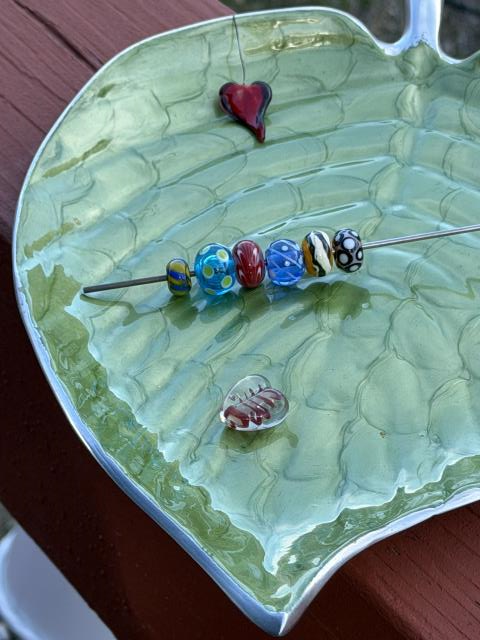 На Арт Фестивале познакомилась со старушкой которая уже 20 лет делает бусинки из стекла. Купила у нее новую горелку - должно будет лучше получаться, инструменты, и 5 кг стекла по супер цене. Забила два чемодана.