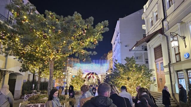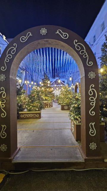 После спектакля немножко по центру прошли. Всё в гирляндах, всё ярко, как будто НГ продолжается:)