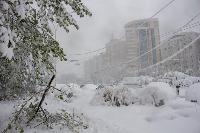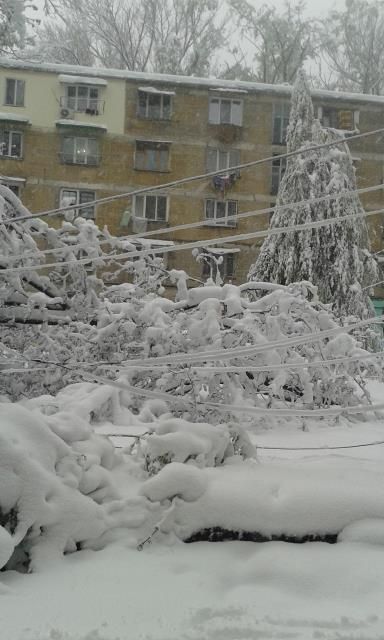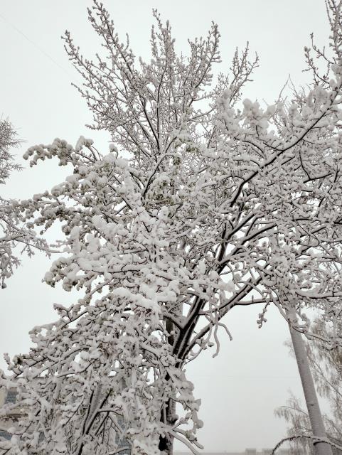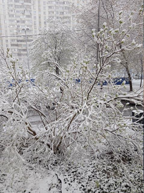 У нас такое было в конце апреля 2017. Внезапно вывалило снежища, какого и не каждую зиму бывает. И поутру мы проснулись в такое... Уже через сутки все начало таять. Но результаты были вот такие.