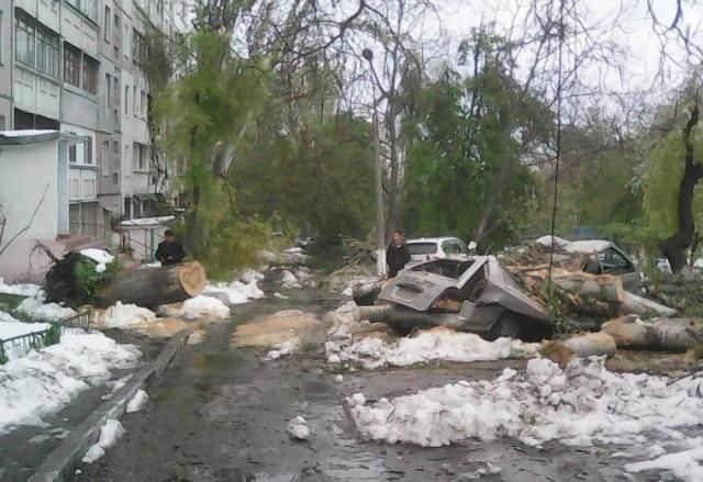 у нас во дворах коллапс(( попадало с утра уже десятка 2 деревьев, перекрыты все въезды и выезды((