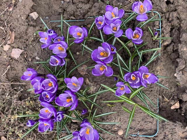 Крокусы . Рядом посадила желтые, а их мыши перекопали((