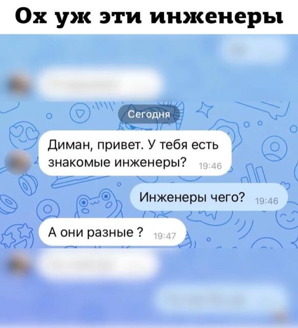 про инженеров: сын как-то в разговоре со знакомым (лет 18-20) упомянул без подробностей, типа рода деятельности, что я - инженер. так парень спросил: "что она прям в каске ходит по стройке?"))