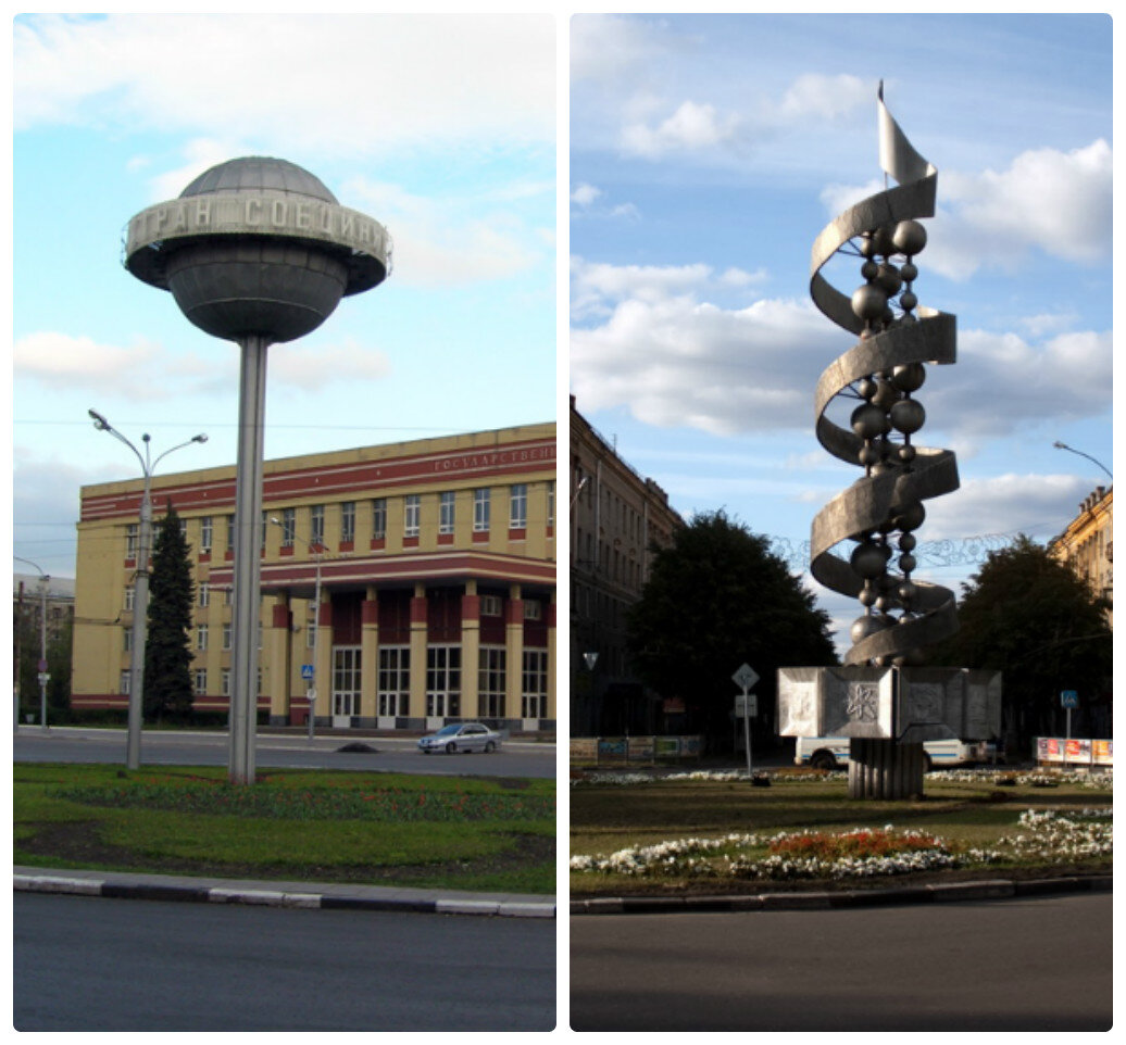 Справа - памятник советской науке. Он должен был стоять напротив ВГУ (на картинке слева). А памятник пролетариям на площади у жд вокзала (справа).