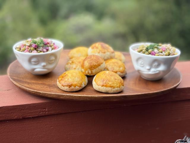 В корзиночках повидло и масляный крем, белковый в слоеных трубочках
