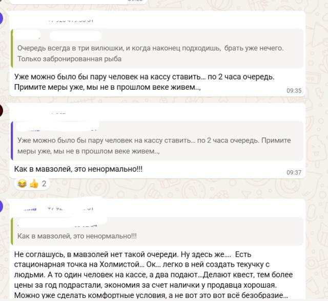 Заказы собираются в чатике, сейчас в нем 571 участник. А вообще у нас город миллионник. Машина приезжает раз в неделю, выстраивается очередь часа на три. Чем ближе к НГ, тем очередь больше.