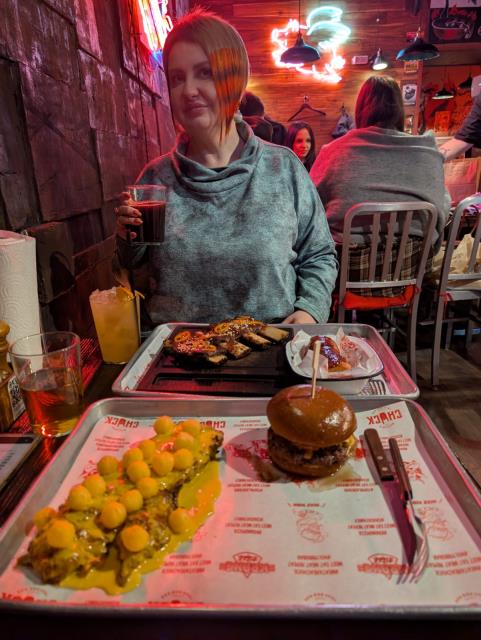 В субботу сходила в парикмахерскую, а после пошли в бар Ходи Рибс на Жуковского 12. Очень вкусные ребра в сырном соусе с сырными шариками. И просто чудесный классический бургер. Говяжьи ребра тоже ничего, но не восторг. Прикольные авторские коктейли.