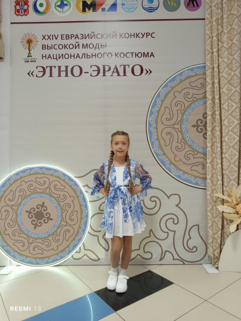 У нас проходил очень интересный Евразийский конкурс национального костюма. Коллекции и сами показы были просто невероятные, и одежда экзотичная, и выходы были просто как театрализованные сцены. Девочки из нашего агентства представляли коллекцию "Гжель" тюменского дизайнера. Очень красивая, яркая одежда была. Но она замуштровала всех на сцене, музыка была очень медленная, под такую ходить сложно, но в итоге все справились. Коллекция заняла 3 место.