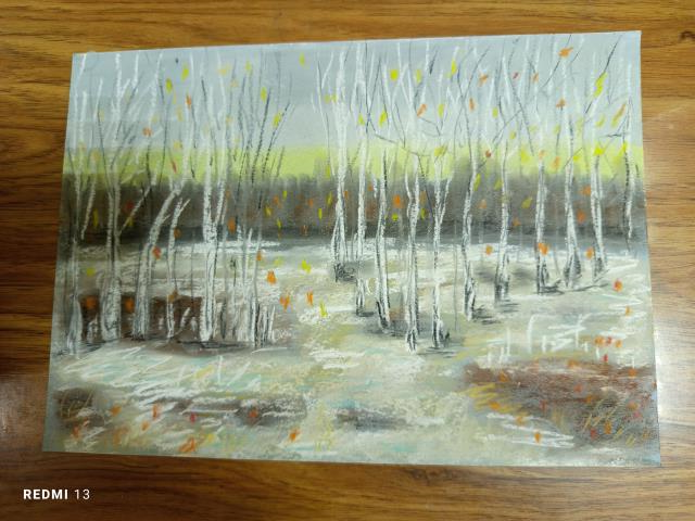 В остальном - работа, снова школа , то тающий, то опять замерзающий снег и лёд....Типичный ноябрь. И пастель к меня ноябрьская организовалась.
