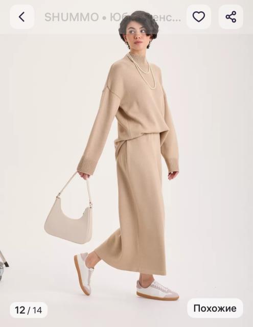У дочки, кажется, ни одной юбки. Но наконец-то она начала покупать себе платья. Я ношу длинные шерстяные юбки-карандаши. Миди с кроссовками не люблю, а сапоги сейчас ношу редко. Еще одна есть, кажется, четверть-солнце