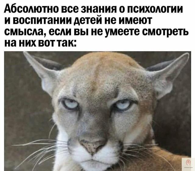 Точно! Но это не только детей касается) Мне муж еще на заре юности говорил "Ты смотришь на меня, как пантера". Так вот что он имел в виду))