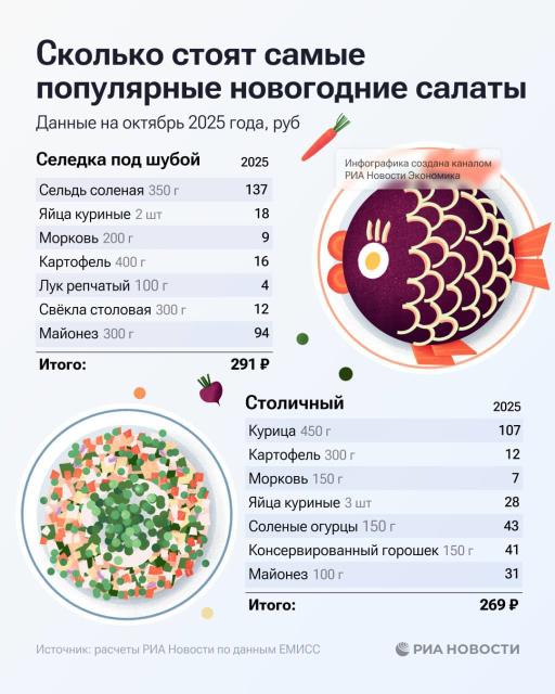 По мнению РИА Новости Оливье стал самым дорогим салатом, на семью из 4 чел он обойдется в 576 руб.