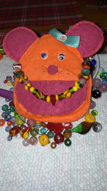 Собираю всё еще Фрошу в путешествие дальше. Обещала бусики ей сделать. Не жемчуг, но веселенькие, как и она сама :) Стекляшки мои разные :)