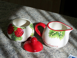 Ну и, конечно, к каждому сервизу своя саxарница... и еще в форме клубничек или с клубничным рисунком.