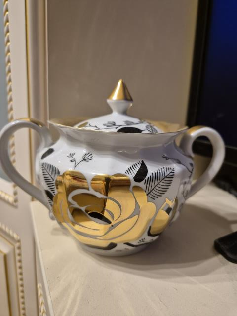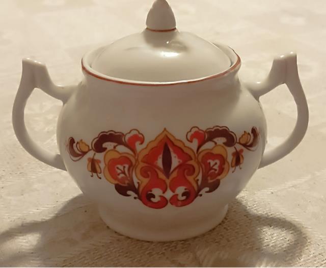 Очень красивый узор. Мне только сахарница попалась. Сервиз нет, а вот чайную пару или сливочник я к ней с удовольствием прикупила бы. Ну, может ещё повстречаю где))