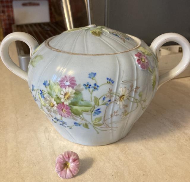 Вместе с саxарницей были еще кофейник-кувшин и вазочка "на один цветок" или маленький букетик для украшения стола.