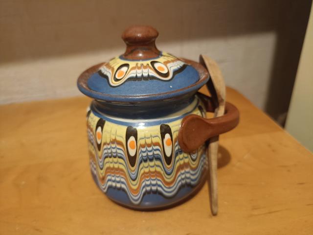 У меня сахарницей работает керамический мини-горшочек, привезенный из Болгарии лет 15 назад. Крышку, правда, в прошлом году муж разбил, но он же и склеил.