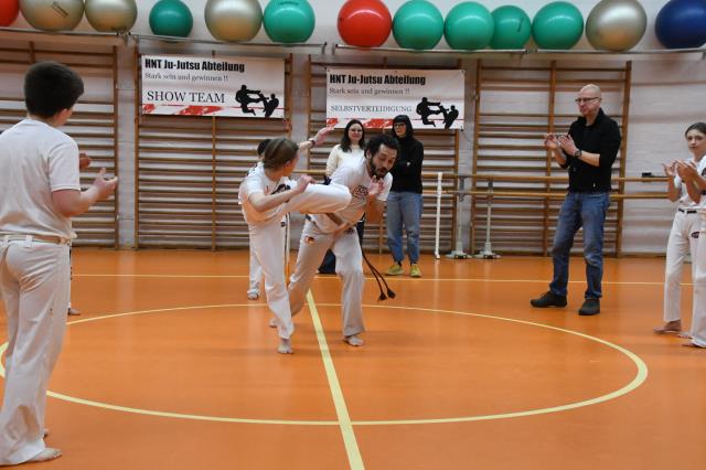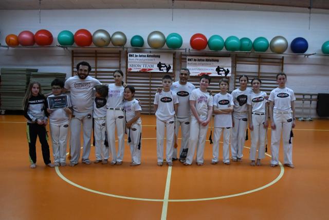 У дочки было зачётное занятие на капоэйре, сдала на синий пояс.