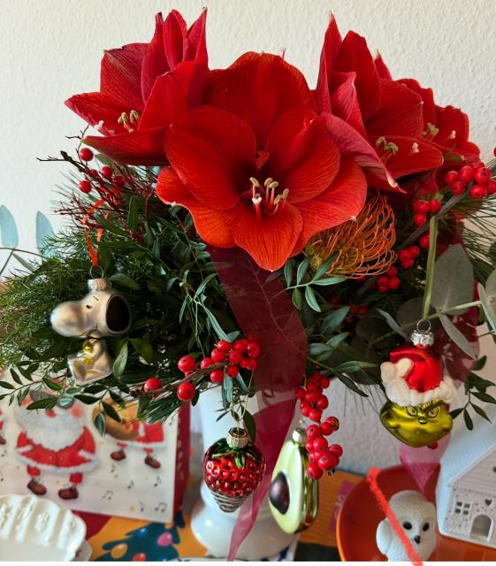 Вот такой новогодний букет прислали мне из Москвы через Fleurop.