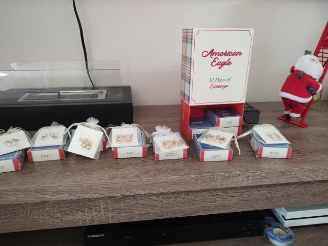У меня коты антистресс, вот очень мне заходят в этом году. Они всегда у нас такие уютные под ёлками, но в этом году мне особенно они заходят)) Всех с наступающими !!! Дочке такой Адвент нашла в этом году - ее цыганское счастье, как Я называю) сережки.Попросила у меня ещё одну дырку в ухе, ужс.. У нас Адвент на 12 дней of Christmas, и то легче)) не весь месяц)