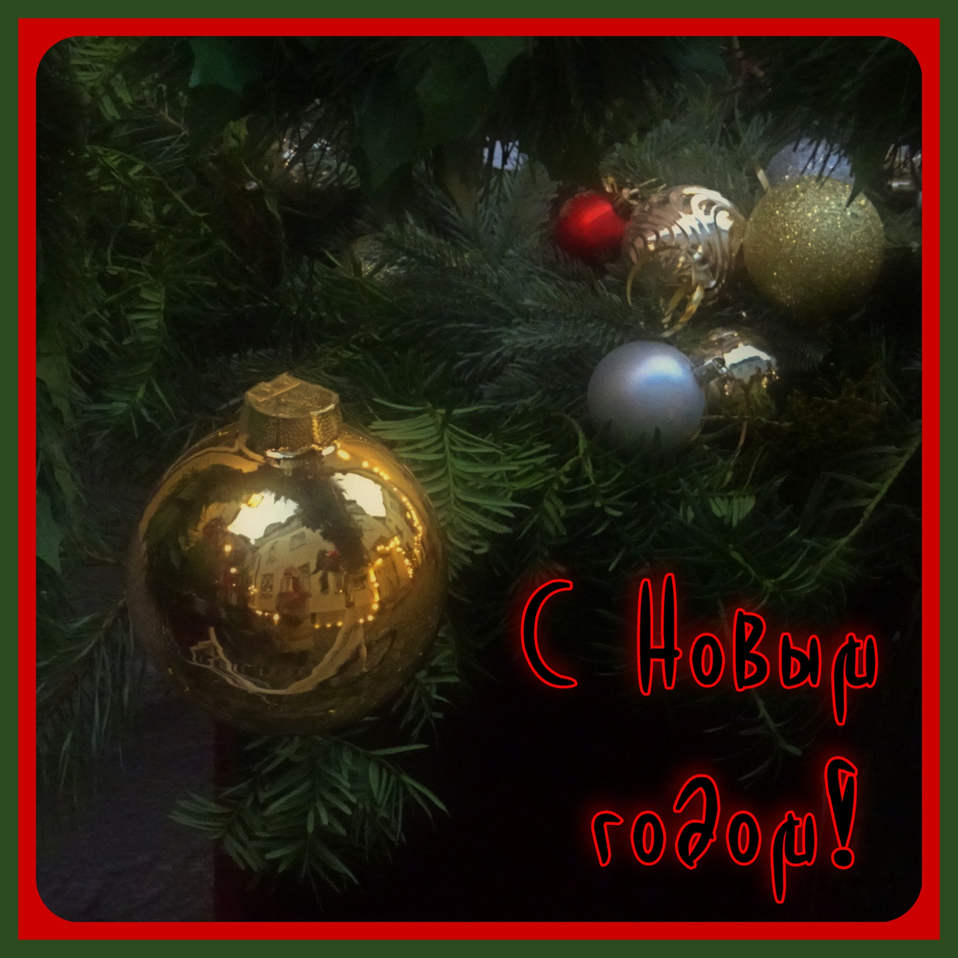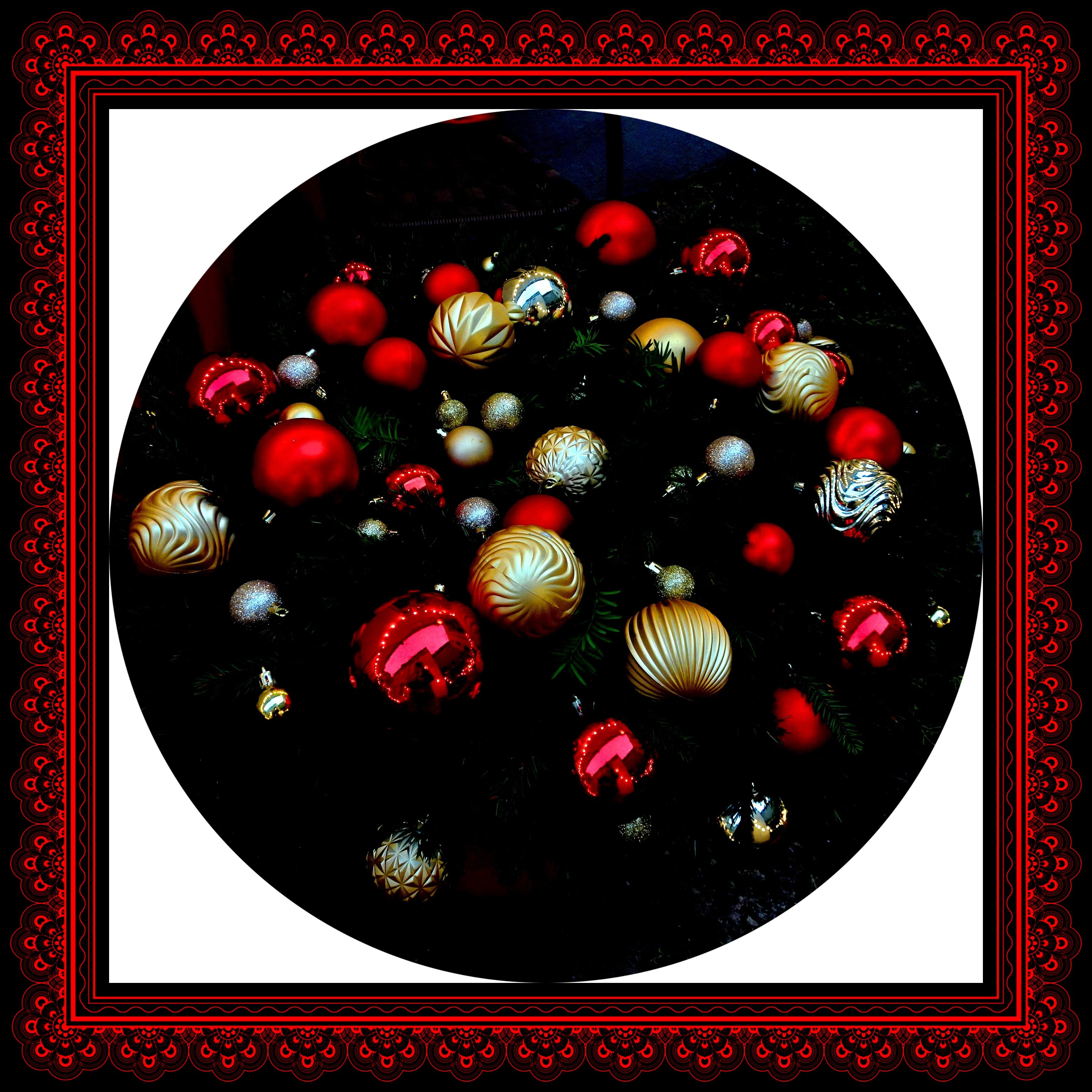да, с шариками и еловыми ветками