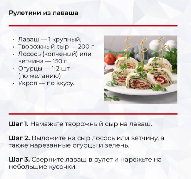 Вам сладкое или солёное? Если солёное - намазать на лаваш, сверху красную рыбу, например, лист салата и завернуть рулетом. Так же в лаваш можно завернуть что угодно - крабовые палочки с яйцом(туда ещё хорошо чуть горчицы добавить) или куриную грудку с солёным огурцом и зеленью.