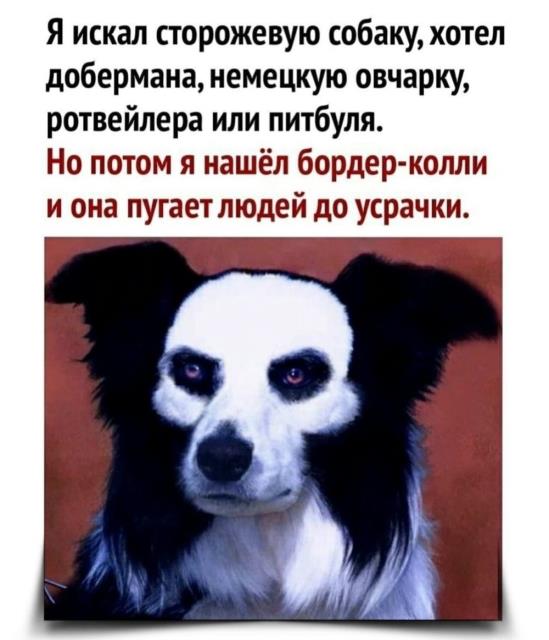 :-)) А если на эту бордер-колли ещё светящийся ошейник зелененький, да в сумерках - вау-эффект обеспечен :-)))