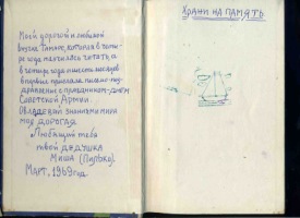 Храню папину книгу по физике, которую ему подарили за победу в областной олимпиаде (папа был из села). Вот там подарочная надпись. 61-го года, кажется.