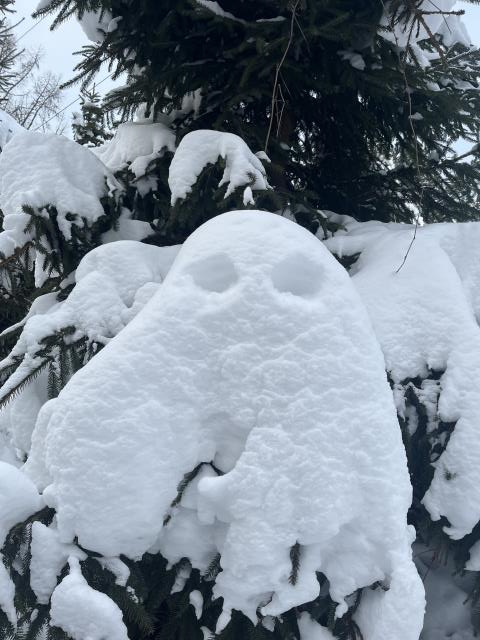 Я опять про снег и дачу. Накидаю интересных сугробов ( на ёлке как будто привидение). Покажу свой снежный домик. Фильм сняла, остался монтаж.этой зимой у нас снежные домики в тренде. Ну и ходила к сыну в гости , знакомиться с кисой