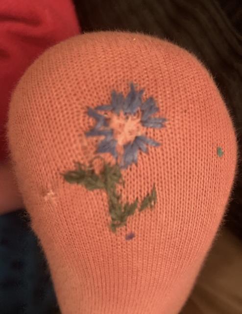 Вот еще с внучкой штопали на коленке, получился цветочек)