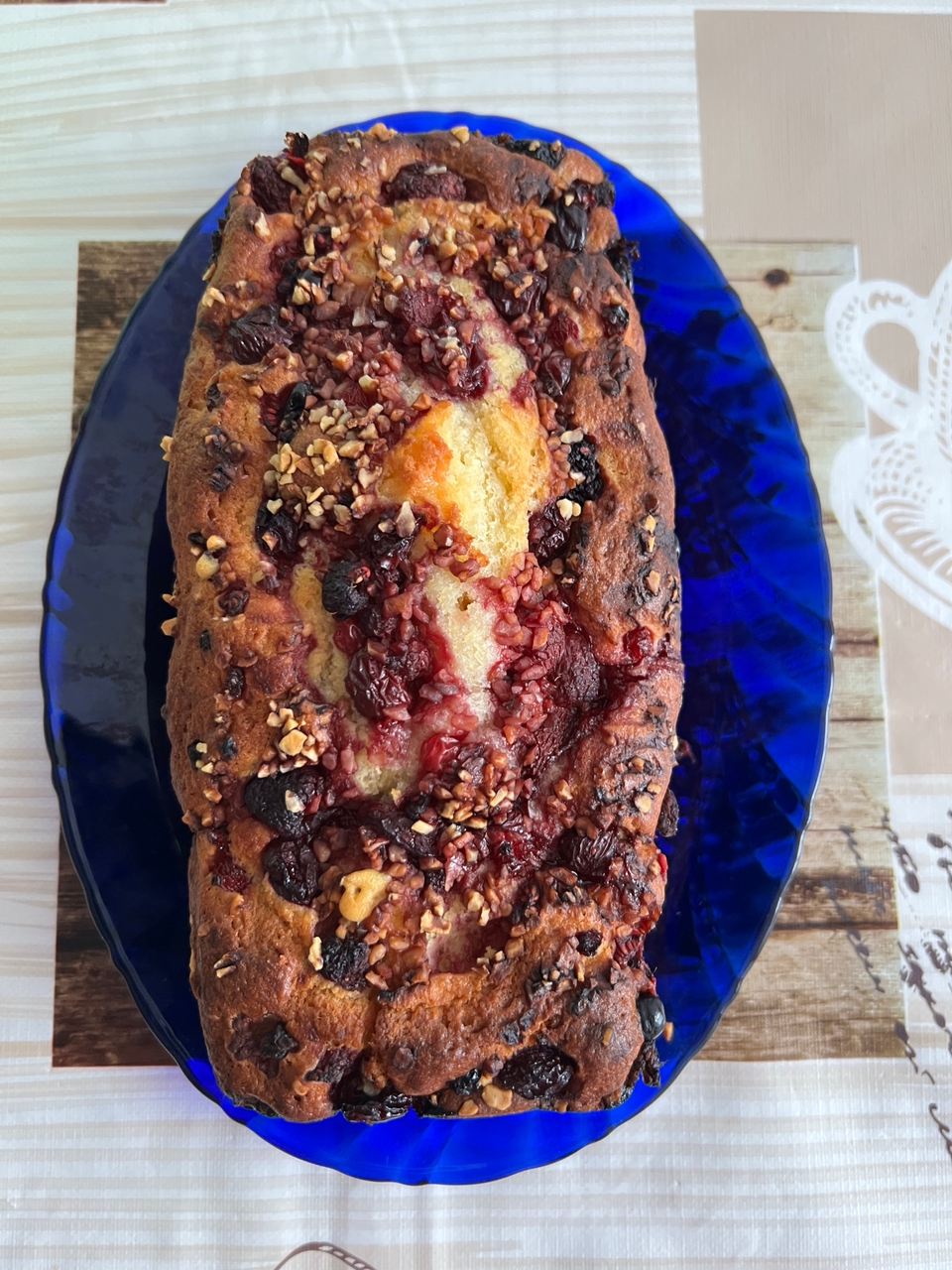 Вместо слив положила замороженые ягоды и дроблёный фундук.