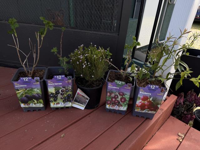Черную смородину, крыжовник, розовую голубику, калу, и