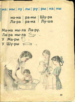 В букваре помню чуть ли не первую фразу " Мы не рабы, рабы не мы" и в конце букваря (кажется) рассказ о неграх, папе с дочкой, которые пришли в обувной магазин. Про расовую дискриминацию в общем.