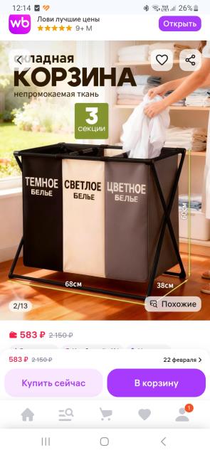 У нас в семье у каждого своя корзина, вещи сортирую перед загрузкой стиралки. 19.02.2026 12:46:55, Ша Нуар