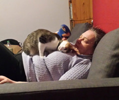 И вот как-то приезжаем мы к детям, у меня рука в лонгете (карпальный туннель соперировали), не то чтобы больно, но жутко неудобно :-) разлеглась я удобненько на диване... и вдруг кошка тут как тут - мурчит (что бывает редко), головой "под руку с повязкой" подлезает, прижимается всей тушкой...