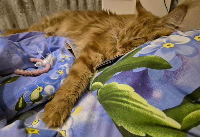 Было в жизни страшное, замучила себя терзаниями, спать не могу, всё мысли в голове про жизнь. Дочь котенка принесла, отвлечь. Ночью вдруг стало голове тепло и спокойно, проснулась- мелочь на подушке, лапами голову мою обхватил, урчит, тоску прогоняет. Больше не приходит спать, к сыну ушел. 19.02.2026 20:37:45, Мадо (Робкая)