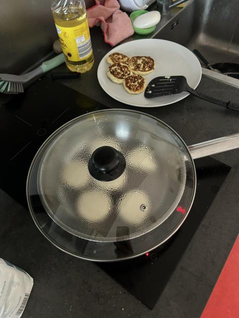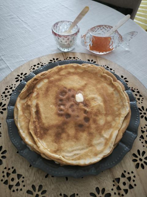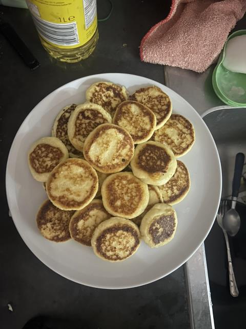 А у нас тоже оладушки больше в ходу. И на кефире, и из чуть более густого блинного теста. Есть удобнее и чище.
