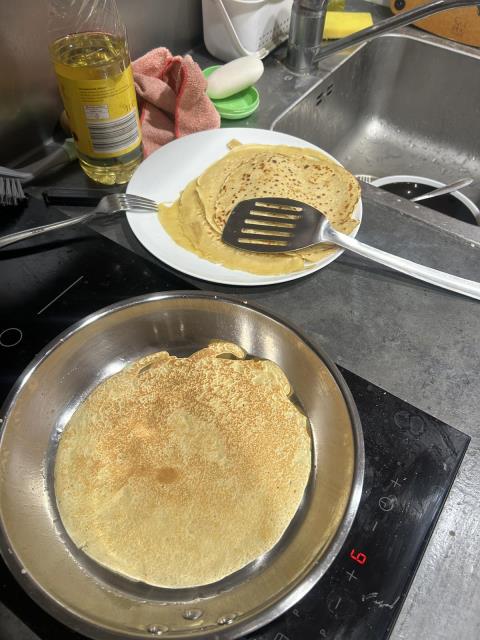 Я из литра молока блины час жарила. Из трёх вообще из кухни не вышла бы.