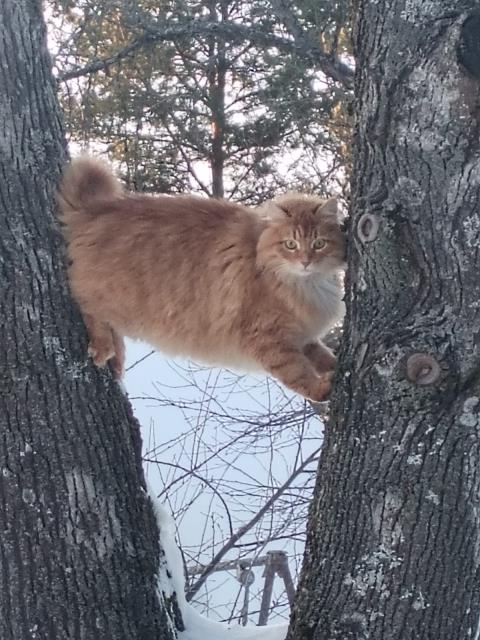 Он до этого ещё прикольнее стоял передние лапы на разных стволах, не успела снять .