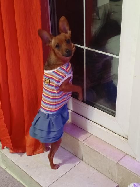 Поздравляем именинницу! Здоровья ей, вкусных косточек и счастья! Такая красотка в платьишке:)))