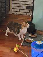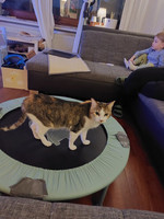 С кошками пока близко знакомиться Фроша не стала, посмотрела на иx безобразия из укрытия
