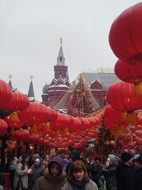 Пока ждала, прогулялись по манежной площади. Народ "фонареет", отмечает китайский НГ.