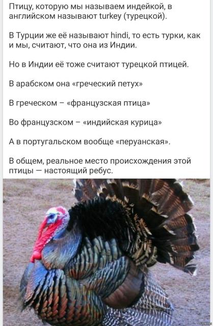 Кстати - а португальцы-то прАвы! :-))) - "Инде?йка[1][2] (самец — индю?к; Meleagris gallopavo (Linnaeus, 1758)) — крупная куриная птица Нового Света из рода индеек, семейства фазановых."