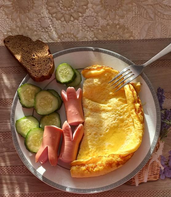Ну омлетик я почти доела, как-то нет у →