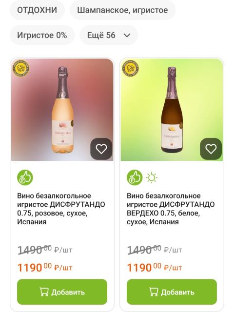 Если игристое безалкогольное еще как-то ничего, то все, что я нашла и попробовала из «тихих» вин оказалось ну сильно так себе, уж лучше просто морс. Покупала под сухое и белое, и красное - одинаковая фигня.